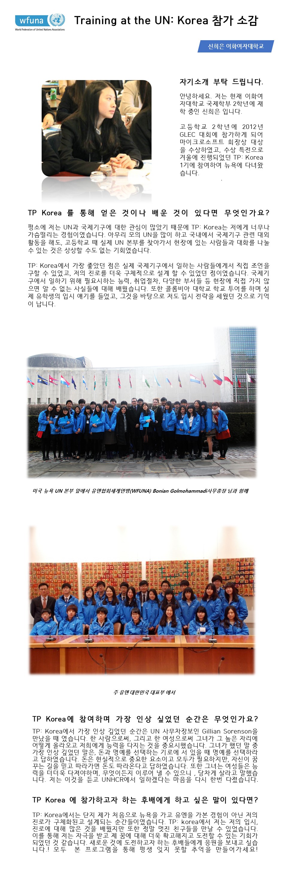 WFUNA's Training at the UN : Korea > 참가자 후기