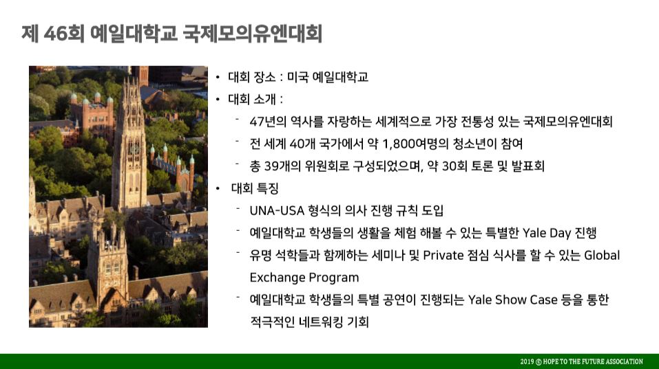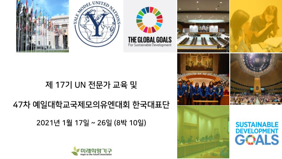 오는 2021년 1월17일~1월 25일에 진행예정인 UN전문가교육 및 47차 예일대학교국제모의유엔대회 참가 의사가 있으실 경우,