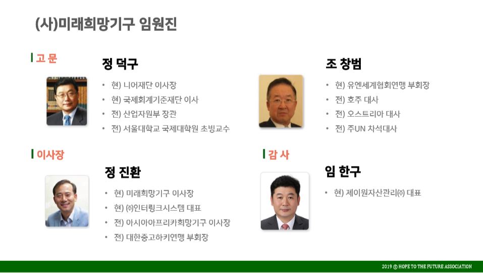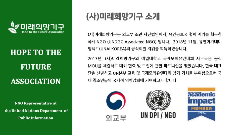 어린이들에게 꿈과 희망을 전하는 미래희망기구 입니다.
