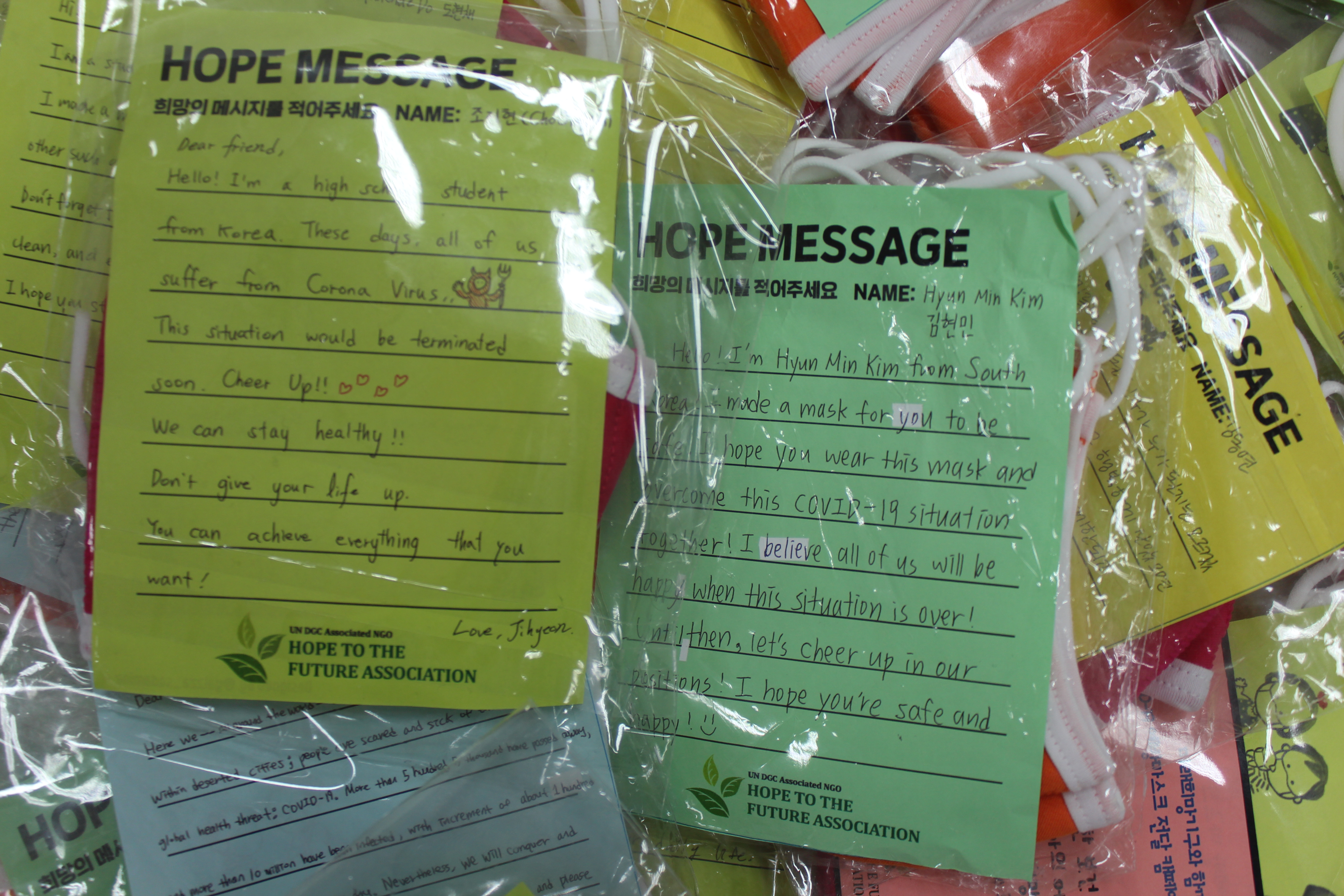 Students from Hankuk Academy of Foreign Studies has participated in making the 'Mask of Hope' and 'Shoes of Hope'. The products from the projects were delivered to Africa in July 2020 through the 'Container of Hope.'