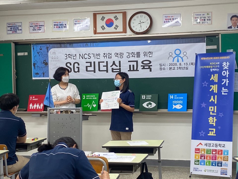 8월 13일(목), 세경고등학교에서 SG리더십 역량 강화를 위한 세계시민교육이 진행되었습니다.