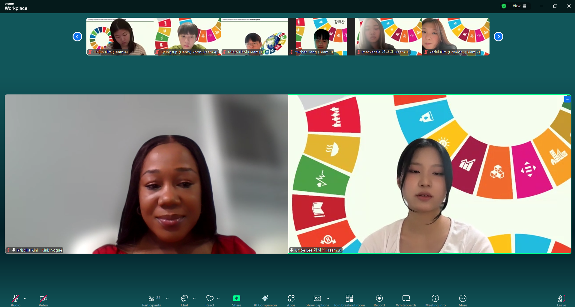 오후 세션에서는 가나의 성평등 관련 NGO에서 활동한 경험이 있는 Priscilla Kini 연사님이 참여해 주셨습니다. 연사님은 청소년 역량 강화 프로그램을 중심으로, 국제적 성평등 프레임워크를 가나 지역사회 활동에 접목시킨 사례들을 소개하였습니다. 특히 성평등(SDG 5)에 높은 관심을 가진 학생들의 질문이 활발히 이어져, 깊이 있는 대화의 장이 되었습니다.