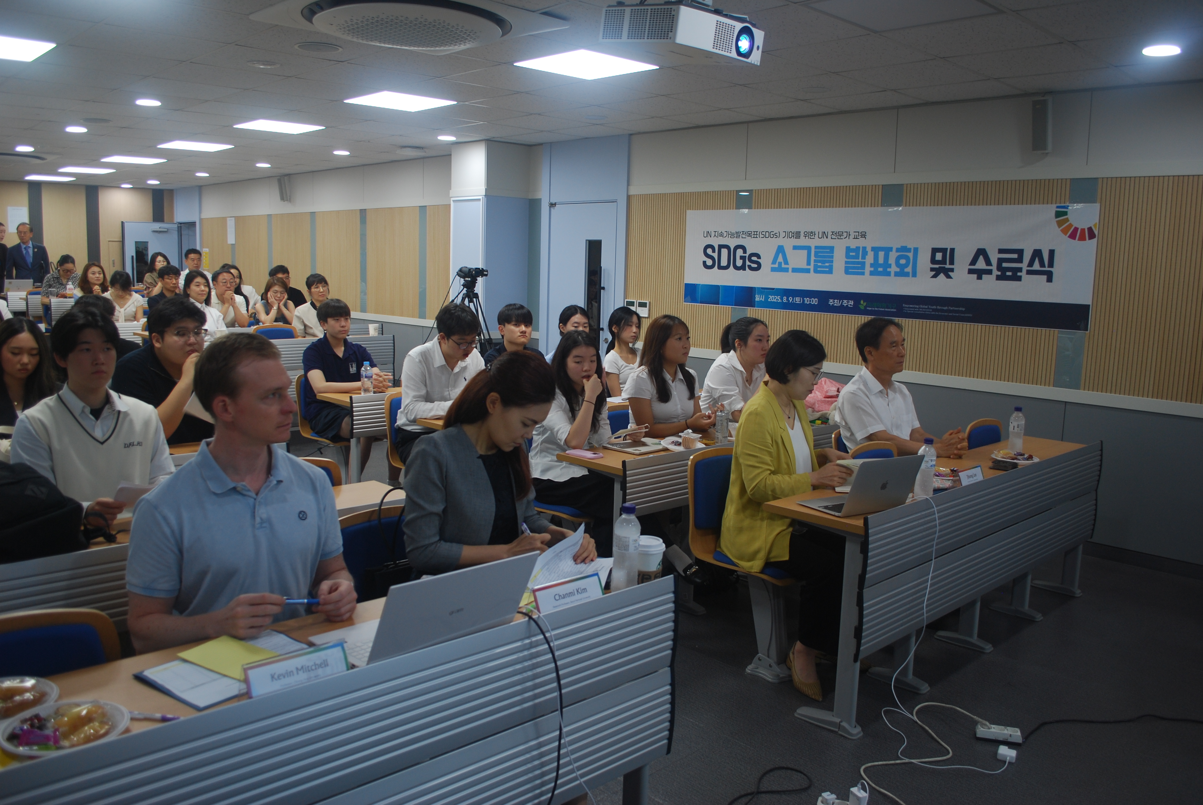 2025년 8월 9일(토), 제24기 유엔 전문가 교육의 마지막 일정인 SDGs 발표회 및 수료식이 서울 대원외국어고등학교 컨퍼런스룸에서 개최되었습니다. 무더운 날씨에도 불구하고 많은 학부모님과 학생들이 참석해주셨으며, 4박 5일간의 교육 여정을 함께 마무리하는 뜻깊은 시간을 가졌습니다.