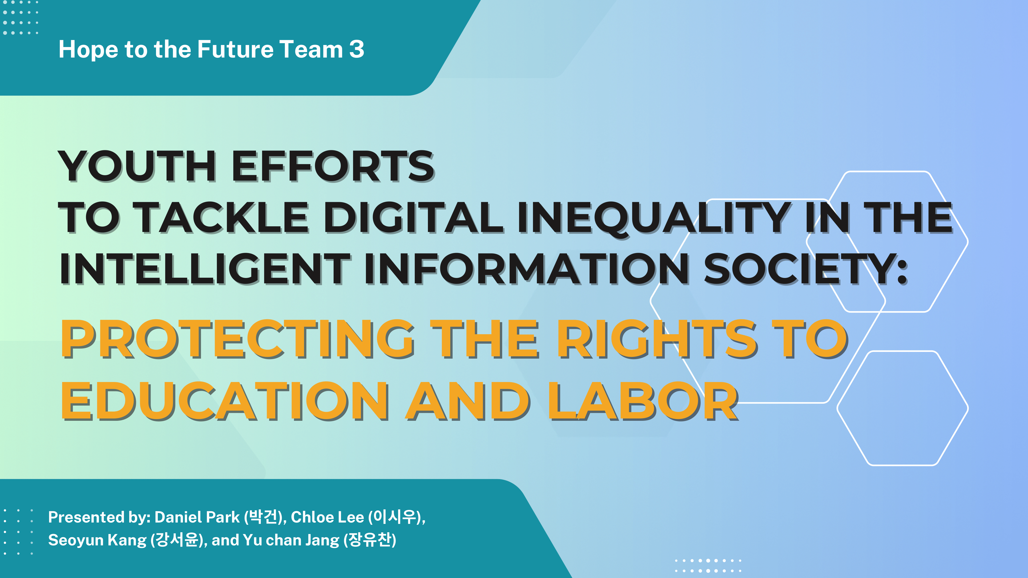 ▶ Team 3 - Youth Efforts to Tackle Digital Inequality in the Intelligent Information Society: Protecting the Rights to Education and Labor